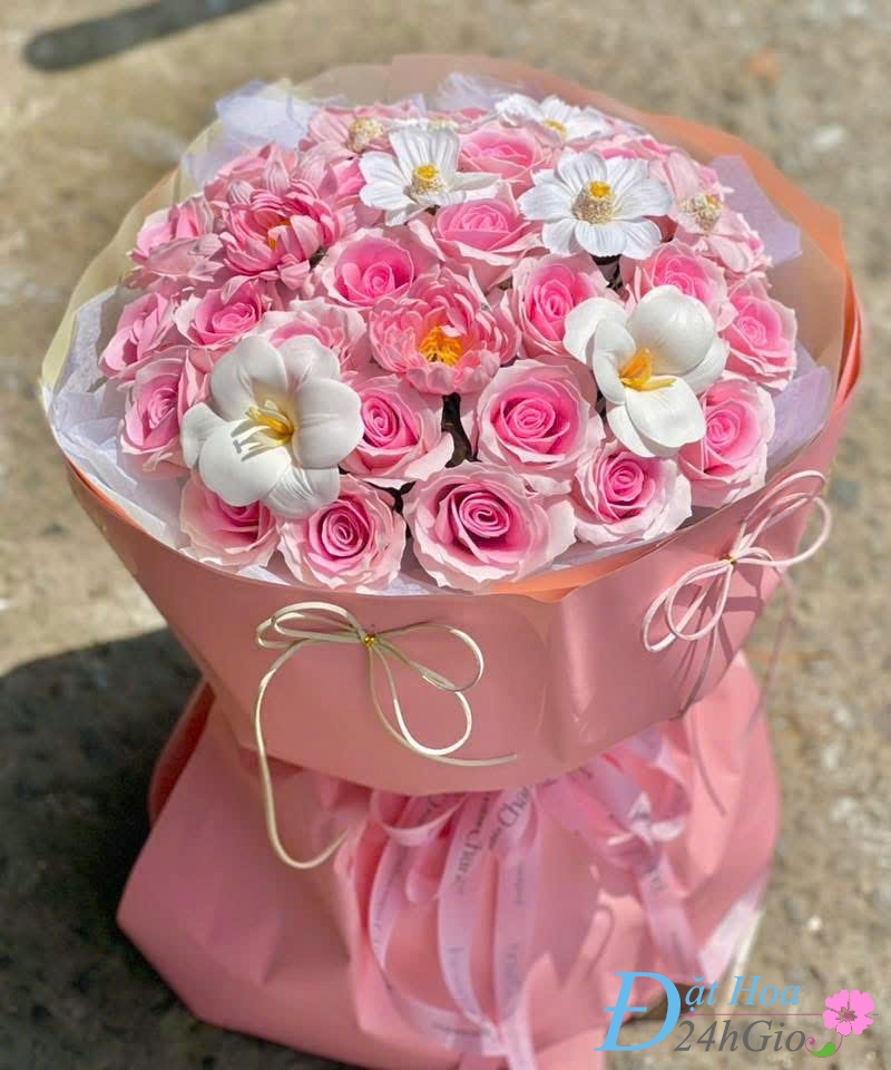 - Bó hoa sáp hồng lãng mạn – Biểu tượng của tình yêu và sự quan trọng.